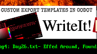 - February 08, 2023 by Rob51Design#bugfix, #writing, #text edit, #terminal, #godotWriteIt 1.0.3 Shoo! One more bugfix release. That's the last time I release a patch low on sleep and without fully testing things. This version simplifies the Centering menu to three options, instead... Continue reading